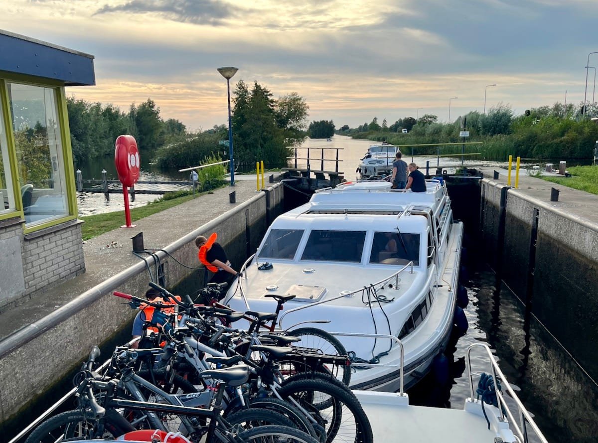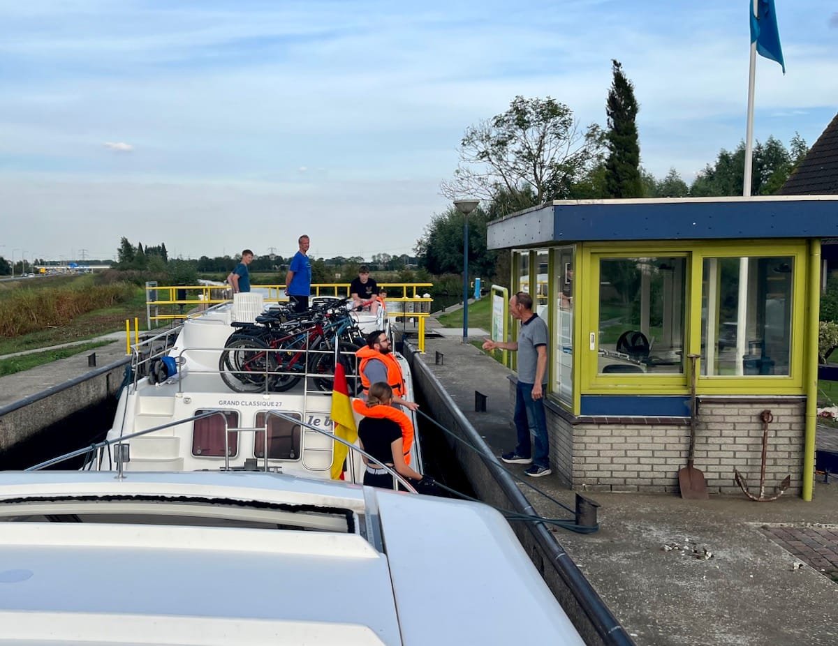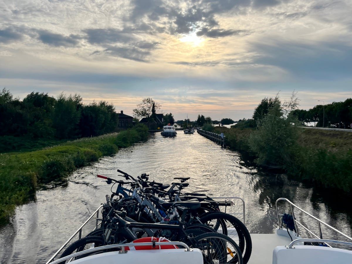 Der heutige Tag begann mit einer kleinen Verspätung: Unser Reisebus startete erst mit 30 Minuten Verzögerung in Manching. Aber das tat der Vorfreude keinen Abbruch! Um 15:15 Uhr erreichten wir endlich Vinkeveen. Nach einem kurzen Theorieunterricht und einer aufregenden Fahrprobe hieß es dann: Leinen los! Um 17:30 Uhr starteten wir mit unseren beiden Hausbooten. Bei einem wunderschönen Sonnenuntergang fuhren wir über kleine und große Kanäle an einer malerischen Windmühle zu unserem ersten Zwischenstopp im Hafen Veesp. Zum Abendessen gab es leckere Dönerteller – ein perfekter Start für unser Hausboot-Abenteuer in den Niederlanden!