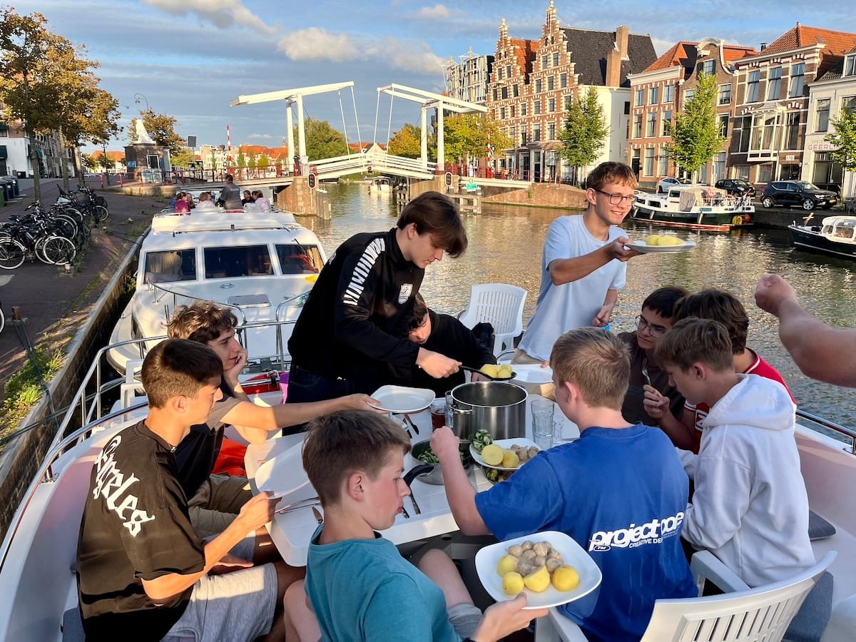 Um 9:30 Uhr haben wir in Veesp die Leinen losgemacht und sind auf dem Hauptkanal durch Amsterdam gefahren. Die Sonne hat uns gelockt, und wir haben uns eine Abkühlung im Wasser gegönnt. Leider ist Ankern in den Niederlanden nicht erlaubt, also mussten wir unseren Badeausflug wegen des Windes, der unsere Boote ans Ufer drückte, schnell beenden. Um 15:30 Uhr haben wir unser Tagesziel, Haarlem, erreicht. In Haarlem haben wir die fantastische Altstadt besichtigt und bei McDonalds ordentlich zugeschlagen. Zum Abendessen gab es dann Köttbullar mit Kartoffeln – ein Feinschmecker-Tag!