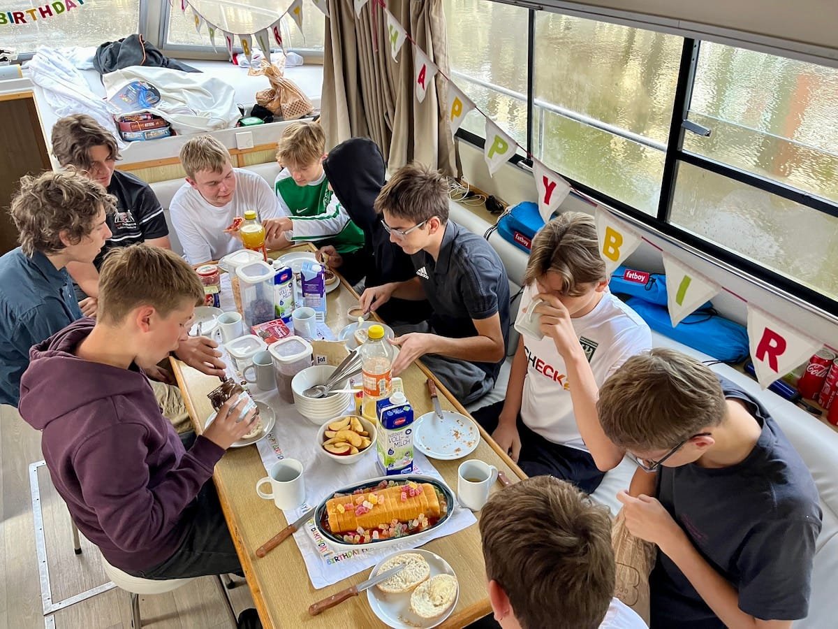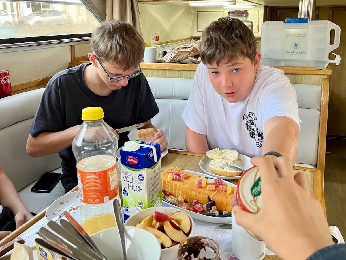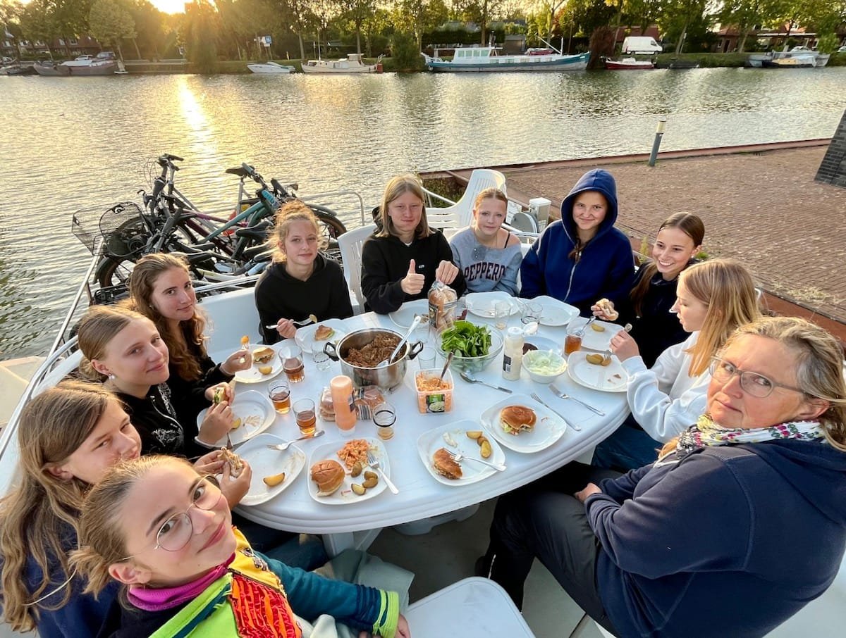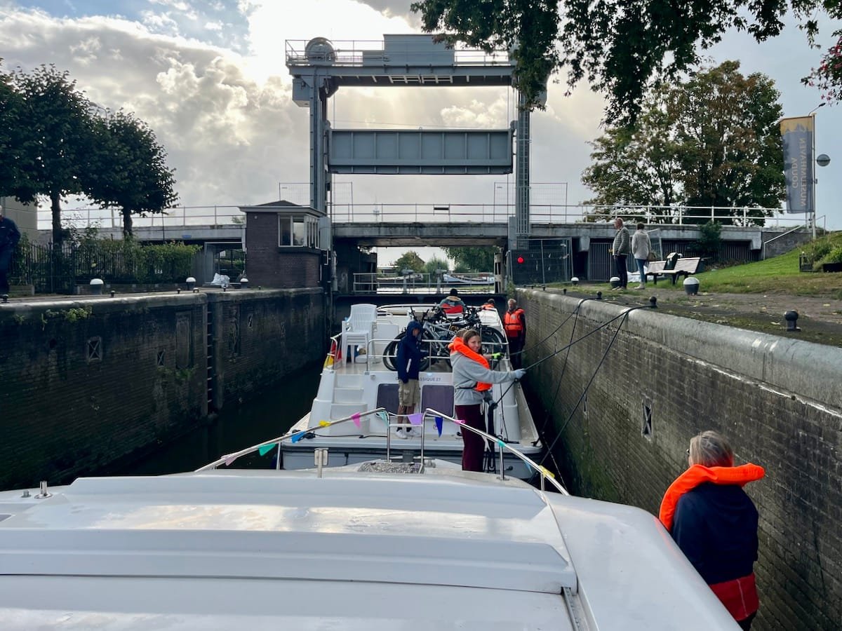 Pünktlich um Mitternacht haben wir Patrick zum Geburtstag gratuliert! Nach einer ruhigen Nacht sind wir um 9:30 Uhr in Gouda gestartet. Zwei Schleusen, mehrere Wolkenbrüche und 6,5 Stunden später mussten wir für 2 Stunden eine Zwangspause einlegen, da der Kanal für Privatboote gesperrt war und nur von der Berufsschifffahrt genutzt werden durfte. Das hat unseren Zeitplan ganz schön durcheinander gebracht, sodass wir nicht den geplanten Zielhafen in Maarsen anlaufen konnten. Stattdessen sind wir in Plettenburg, einer Vorstadt von Utrecht, gelandet. Zum Abendessen gab es dann leckere Pulled Pork Burger.